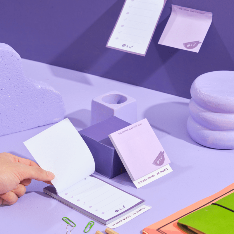 Their sticker notes come in 2 sizes, both with their signature purple colors. The square pad (3”x3”) is super versatile, with enough space for your quick musings, while the vertical one (3”x5”) lets you write your to-do list in style. Both come with 50 sheets each!